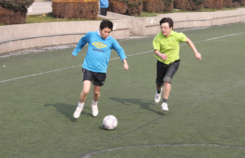 ? ? ? ?“小易隊加油……”,“小道隊加油……”,伴隨著激情的吶喊助威,易道兒郎們拉開了易道教育“操場冬點兵”戶外鍛煉總動員之友誼足球賽的帷幕,賽場上奔跑追逐淋漓盡致的快感,清新的綠,溫馨的藍,穿插交錯,分清的是隊友,分不清的是易道心、易道情。
