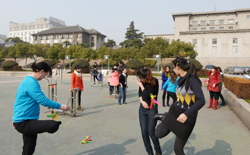 ? ? ? ?冬天不是慵懶的借口,向臃腫的羽絨服say No,易道姑娘們也不是示弱,玩起了踢毽子、跳繩、籃球,放松恣意的笑臉,嬌俏靈活的身影,感染著過路的人,這就是易道人,這就是易道style!